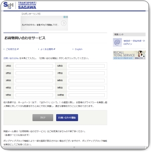 ■ 飛脚宅配便(旧佐川急便:サービス名):「お荷物問い合わせサービス」あり。